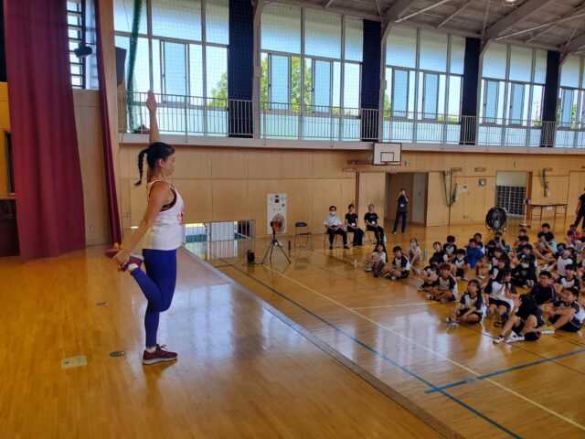 タイトルは「元気いっぱい!みのっこ 姿勢がよくなる小学生の体幹トレーニング」と題して、姿勢と呼吸、姿勢と体幹についてのお話とエクササイズをレクチャーいたしました。内容は、即効性のある柔軟性エクササイズや、SAWAKI GYMの準備体操でも登場するダイナミックストレッチでした。