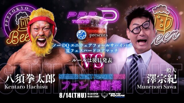 8月14日開催のプロレス大会に、八須拳太郎、澤宗紀、そして澤木一貴が参戦!