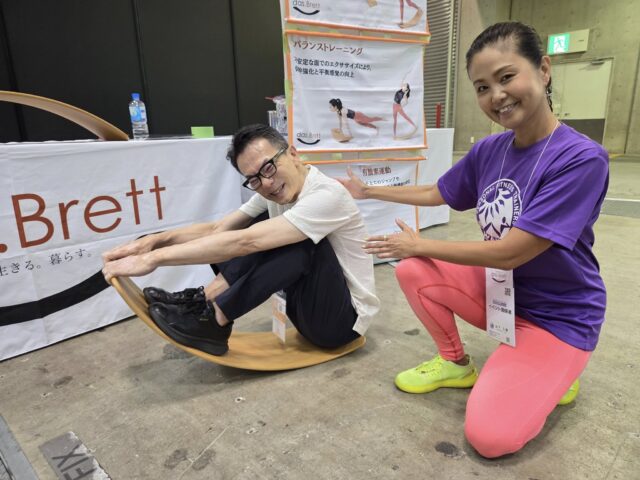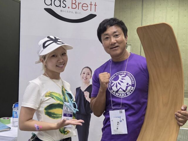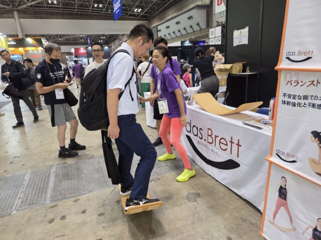 去る2025年7月31日(木)に東京ビッグサイトで開催された日本最大級のフィットネス展示会「スポルテック2025」のイベント内ブースで、サワキジムでお馴染みのドイツのフィットネスボード「ダスブレット」を参加者にご案内してきました(澤木一貴・山下三輝)。
