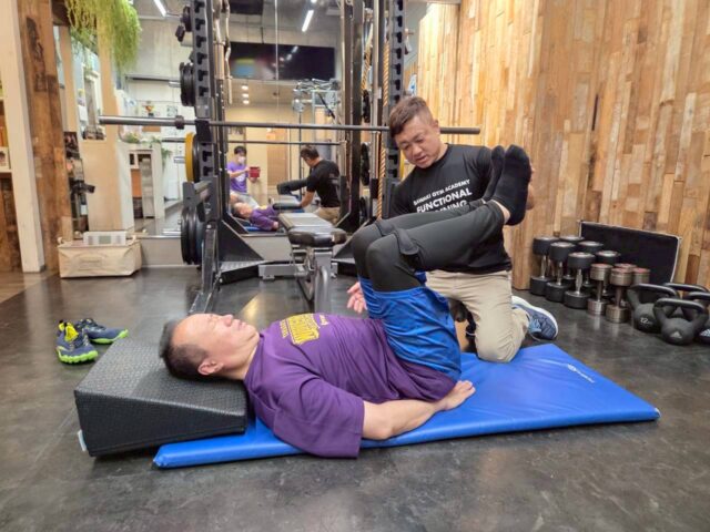 サワキジムでは筋トレの前に入念なストレッチやモビリティエクササイズを取り入れ、
