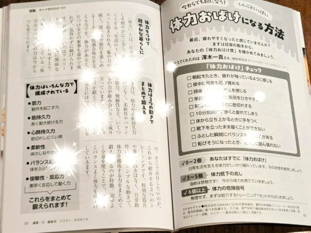 日々の暮らしをラクにするヒントが詰まった本誌の中で、今回取り上げられているのは「体力」というテーマ。澤木一貴著のベストセラー『体力おばけへの道』の一部をアレンジした内容です。