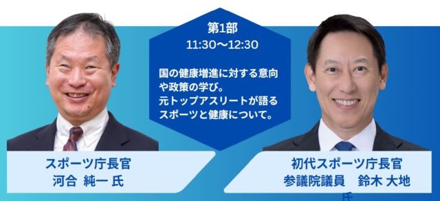 鈴木大地氏、河合純一氏の講演では企業と地域社会における健康施策について、行政視点からの取り組みが紹介されました。