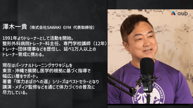 2026年4月3日サワキジム代表・澤木一貴が、元サッカー日本代表で、現在は腸活をはじめとしたコンディショニングの会社「Aub」代表をされています鈴木啓太 さんのYouTubeチャンネルに出演しました。